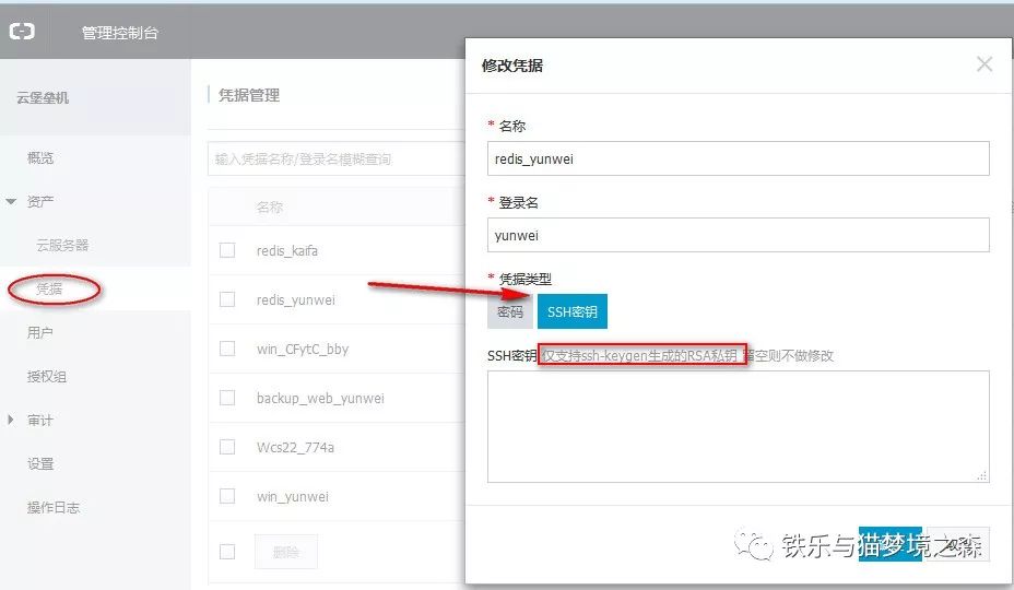 堡垒机上设置好凭据,简单来说也就是将私钥id_rsa对应下载回本地客户机,