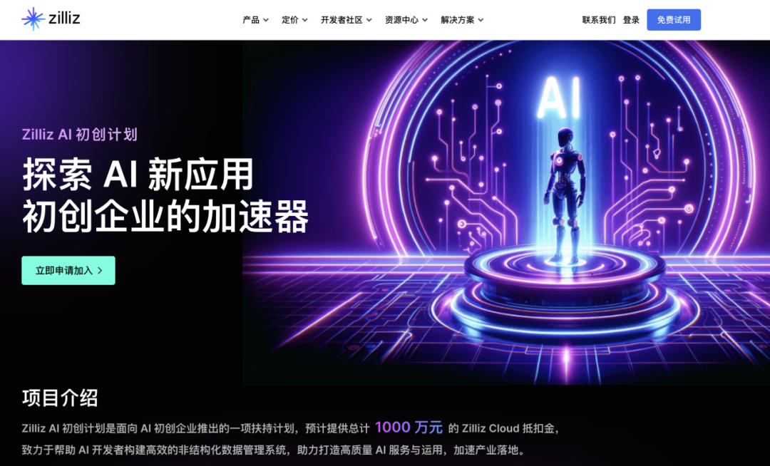 近期,Zilliz 面向 AI 初创企业推出了“Zilliz AI 初创计划”,预计提供总计 1000 万元的 Zilliz Cloud 抵扣金,帮助 AI 开发者构建高效的非结构化数据管理系统,助力打造高质量 AI 服务与运用,加速产业落地。
