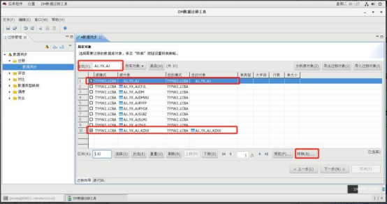 通过查找筛选出要迁移的表,选中,点击“转换”;