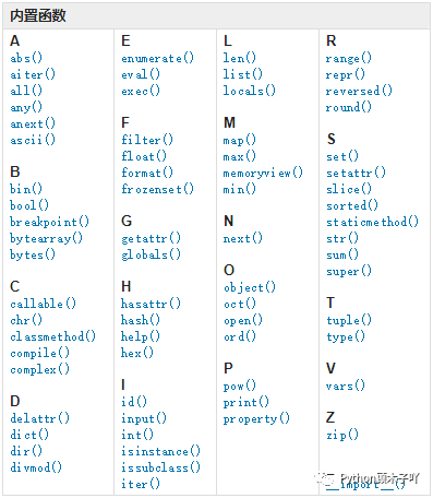 是另外一些就不常用,如果你感兴趣的话附上: Python 官网中各个函数的