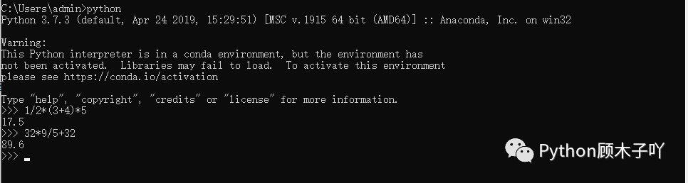 先试着在命令行/终端中进入 Python 环境,输入这样的公式: