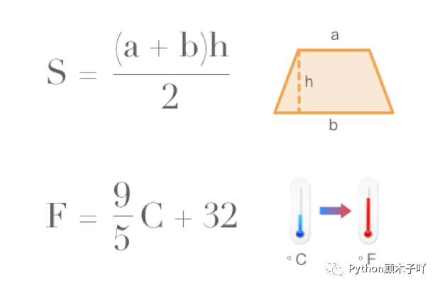 看着有点眼熟吧?第一个是数学的梯形计算公式,第二个是物理的摄氏度与