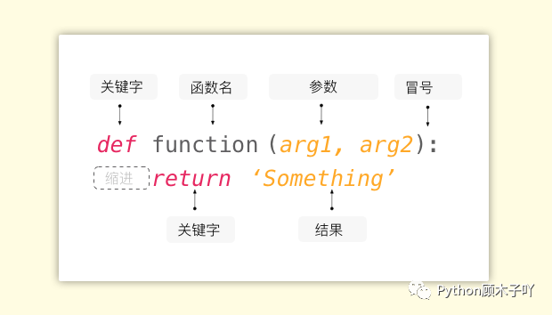 即返回结果。好,现在我们读一遍咒语:Define a function named ‘function’ which has two arguments : arg1 and arg2,returns the result——‘Something’