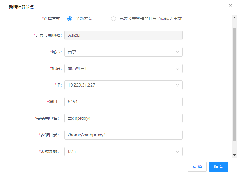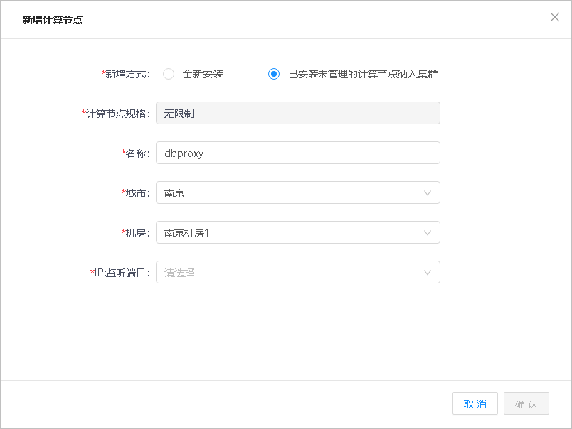 新增计算节点有两种模式,全新安装和使用已安装未管理的计算节点加入集群。