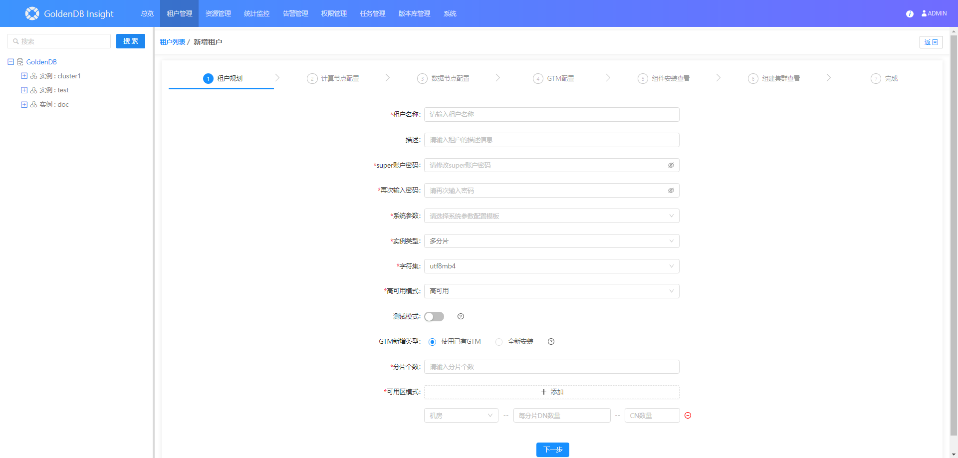 2.在左侧实例树中,展开租户实例下的数据节点。