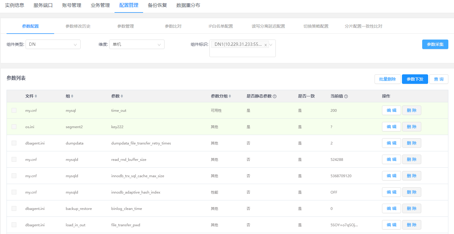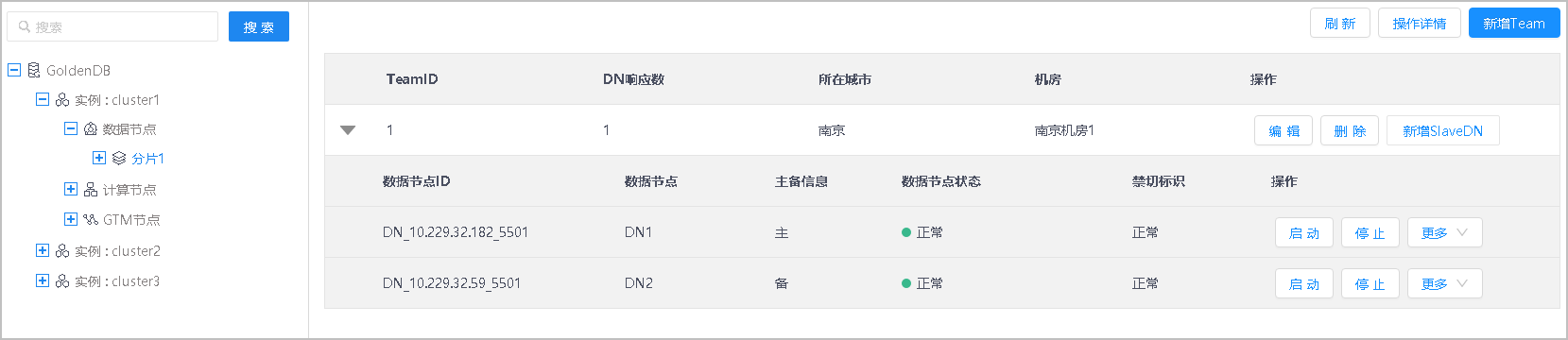 3.单击待查看数据节点分片下的DN,进入DN信息查看界面。