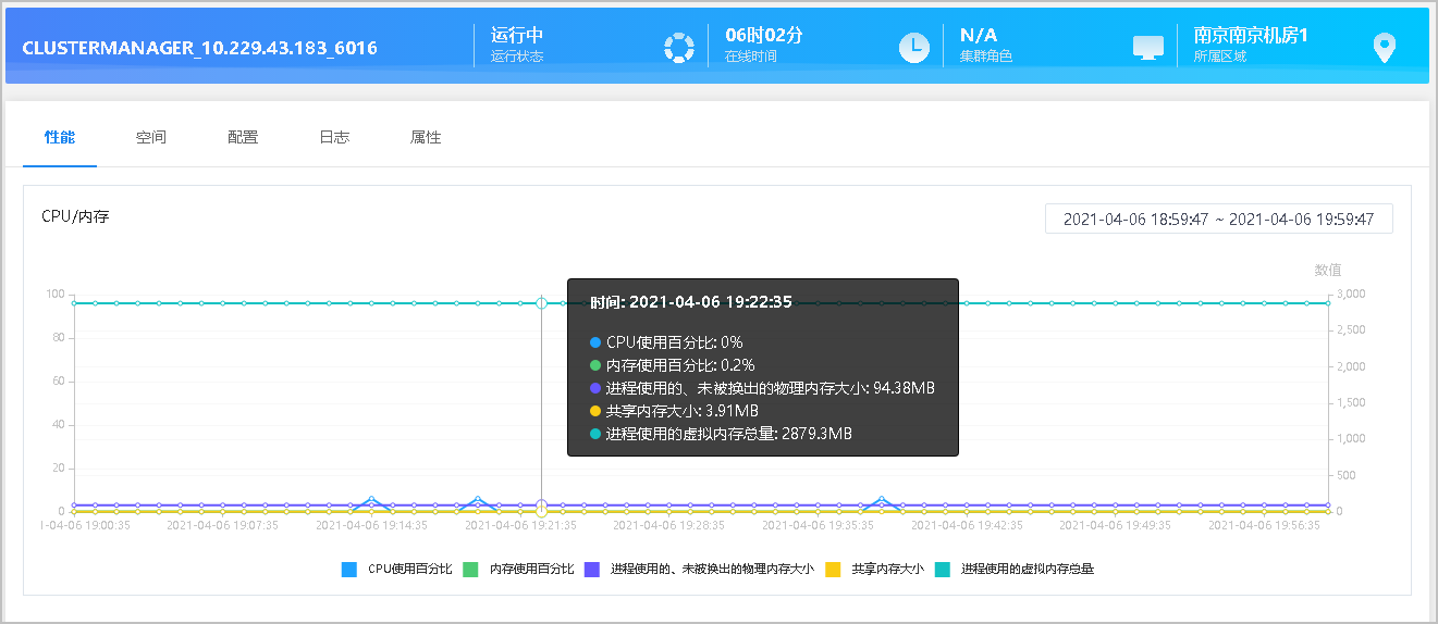 集群管理页面可查看管理节点、GTM、LoadServer的运行状态及详情。