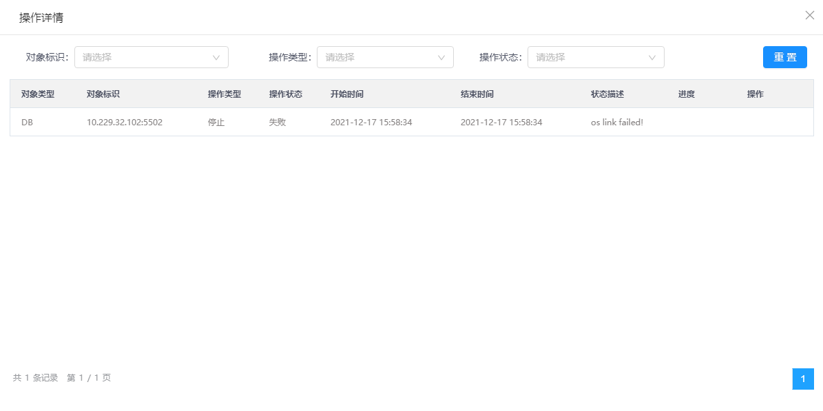 6.单击操作详情按钮,弹出操作详情窗口,可查看DN的管理操作结果。