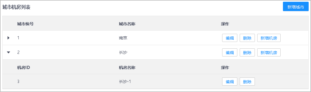 首次新增机房,需要先增加城市;如果城市已存在,增加城市操作可跳过。