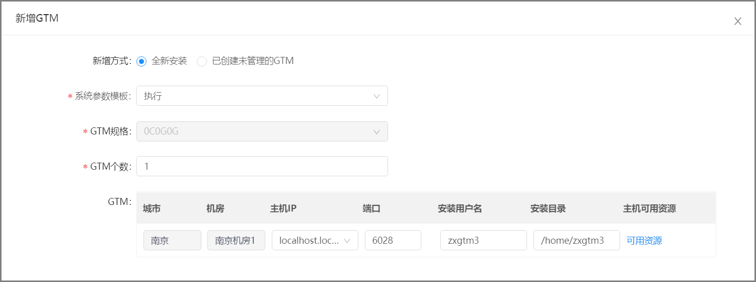 3.点击全新安装,选择是否执行系统参数模板、GTM规格、GTM个数,等待规划完毕,单击确定,进入GTM全新安装。