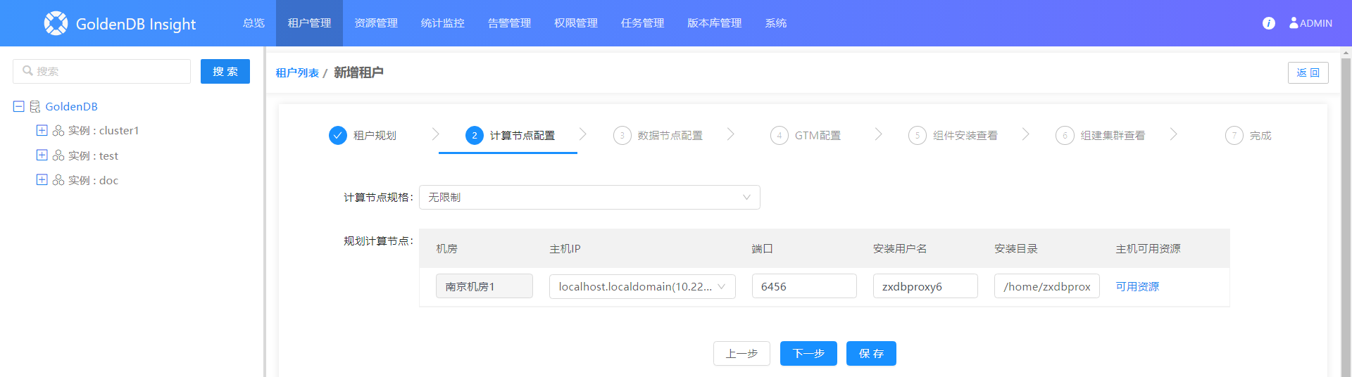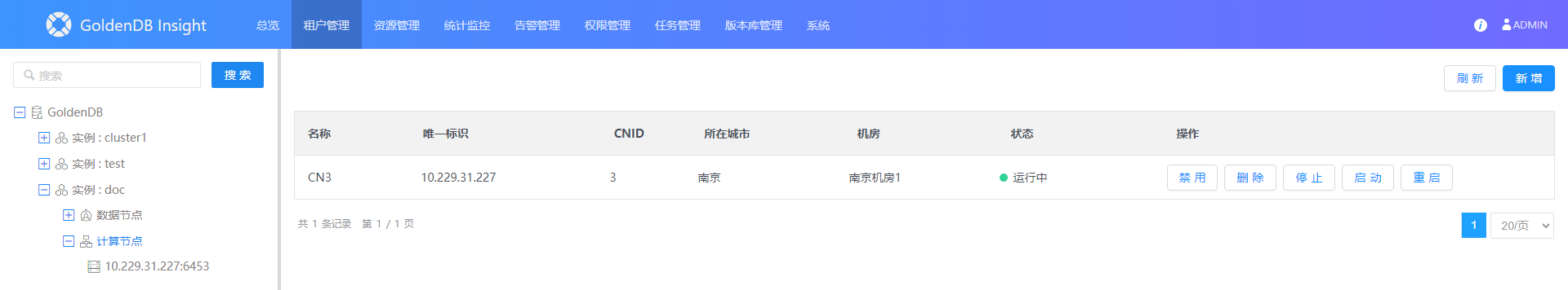 2.在左侧实例树中,展开租户实例下的计算节点。