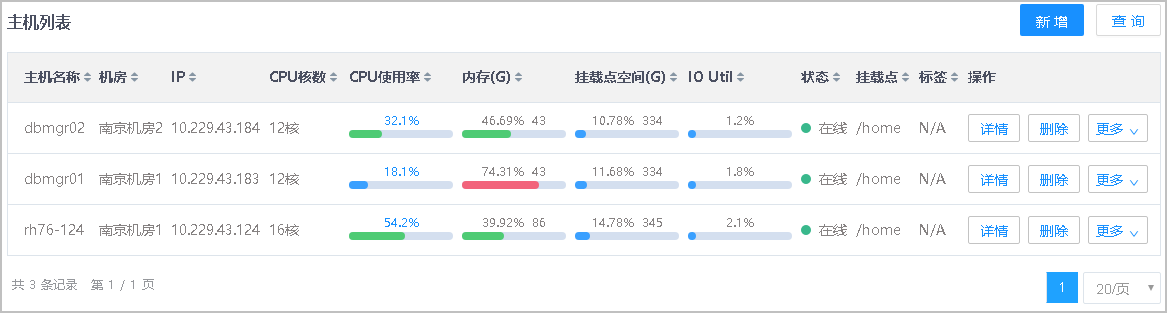 ● 支持机房、主机的添加删除操作。