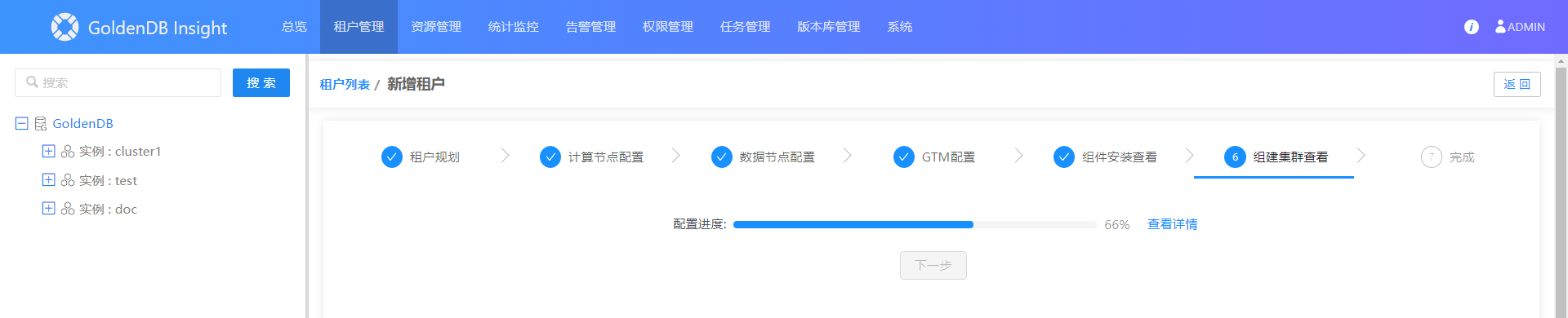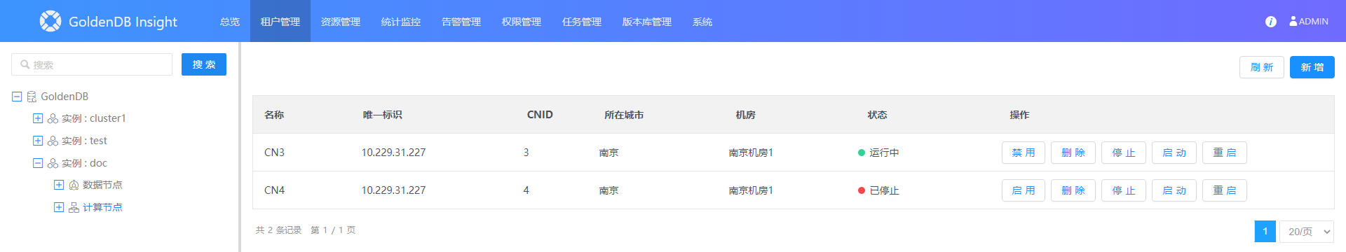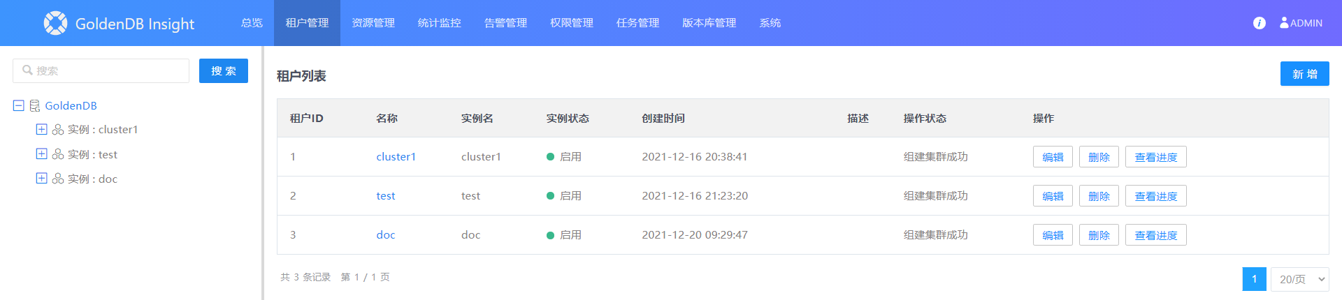 1.选择菜单[租户管理→GoldenDB],进入租户列表界面。