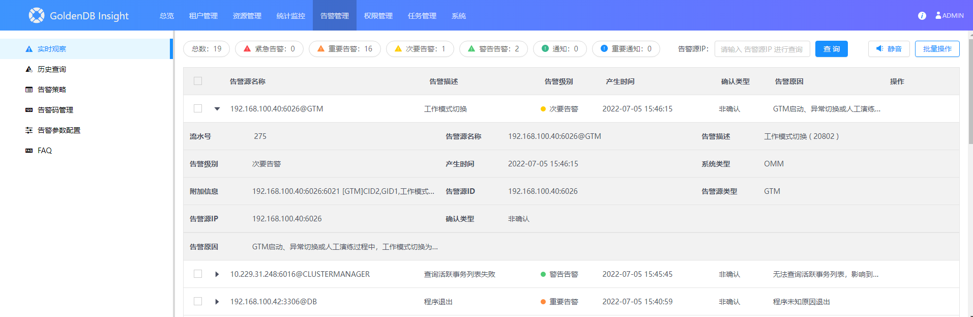 管理实时告警