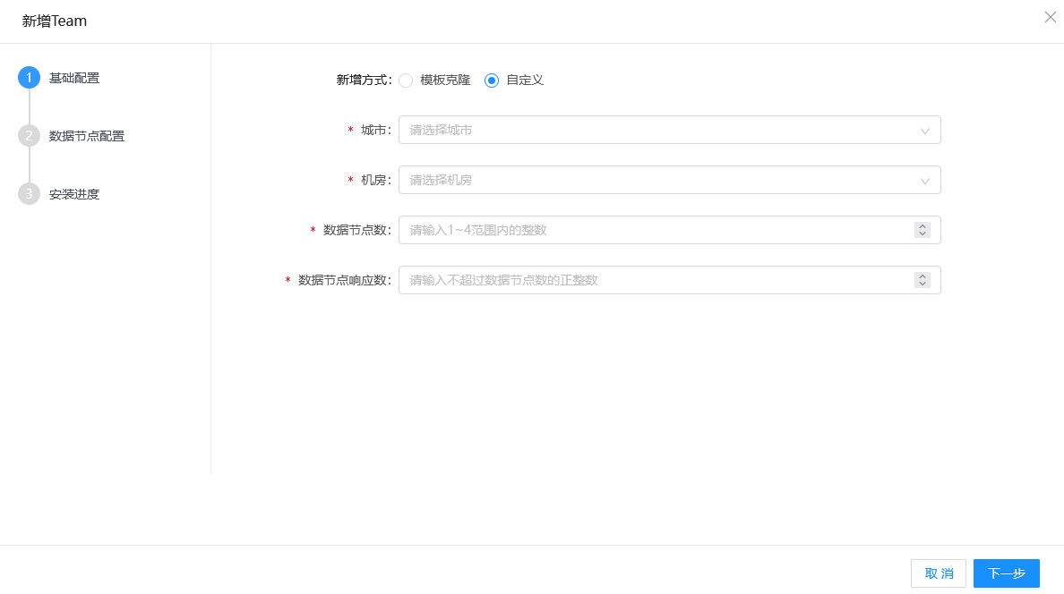 5.下拉菜单选择计算节点规格(计算节点规格默认为无限制),规划计算节点(可以选择该机房下不同的主机),单击下一步按钮,进入数据节点配置界面。