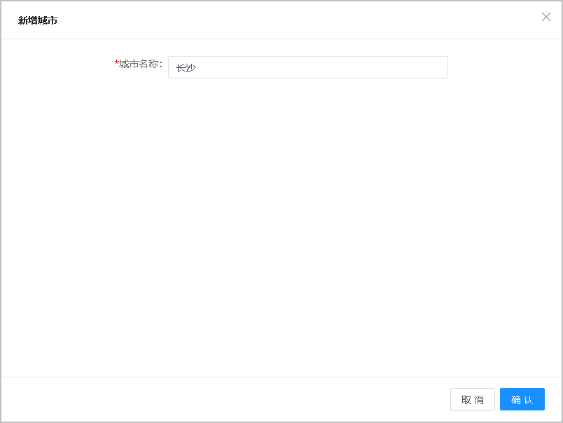 2.单击新增城市按钮,弹出新增城市窗口。