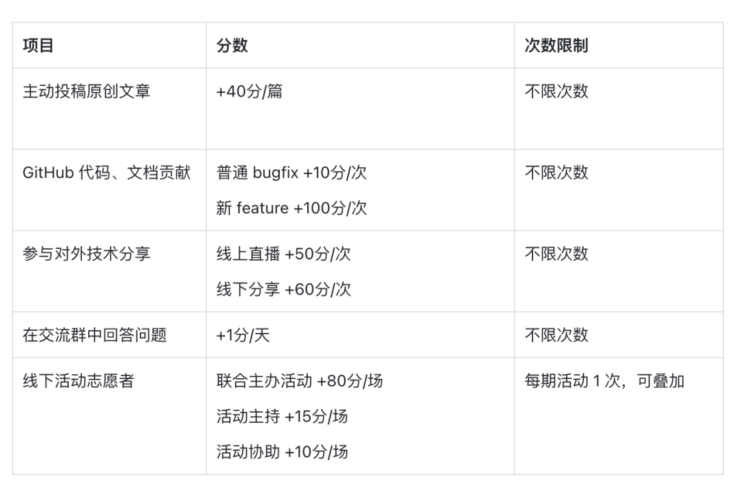 同时我们也将根据各位大使不同的贡献,在年底为大家授予特殊的称号,贡献得分细则表如下: