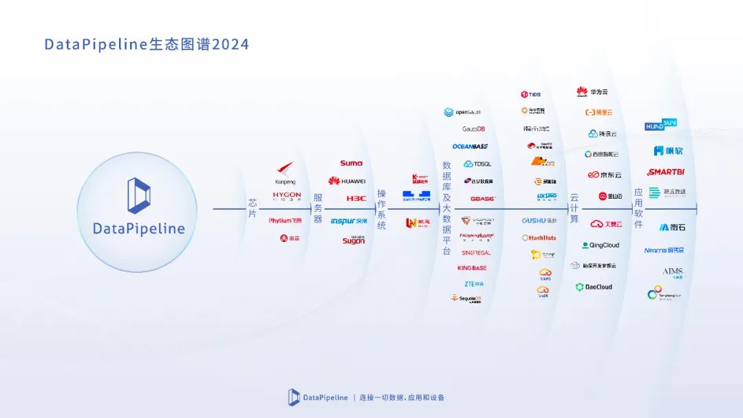 长期以来,DataPipeline积极探索行业生态的建设,致力于为客户提供从选型适配、方案实施,直至项目落地的全方位保障服务。目前,DataPipeline 不仅与华为云GaussDB实现了适配,还成功与腾讯云TDSQL、GoldenDB、Oceanbase、GaussDB、Gbase、人大金仓、DM8、TiDB和SequoiaDB等多个国内领先的云服务和数据库平台完成了生态适配与联合解决方案,构建了完整的全产业链生态图谱。