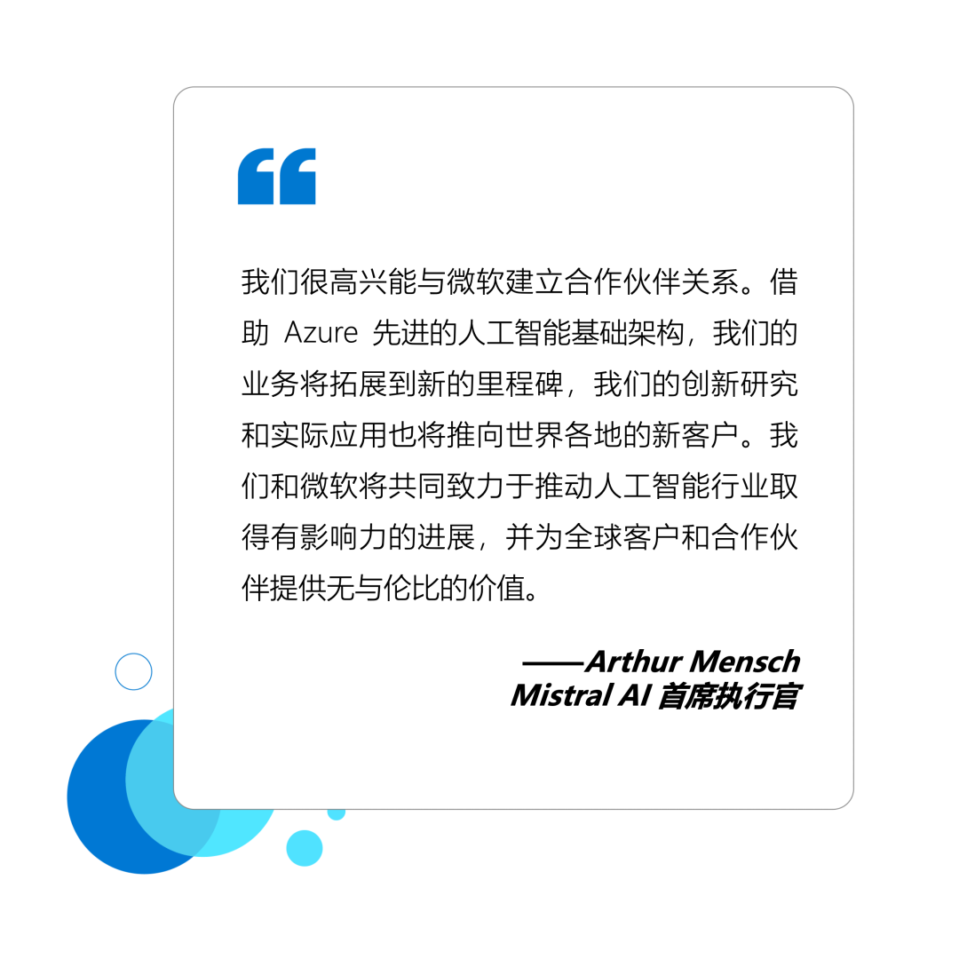 最近宣布的微软与 Mistral AI 建立合作关系的消息,就是一个很好的证明。表明微软可以帮助人工智能领先者访问 Azure 的前沿智能基础架构,以加快下一代大语言模型的开发和部署。Azure 不断增长的人工智能模型目录提供了超过 1,600个模型,其中包括 OpenAI、Mistral AI、Meta、Hugging Face、Deci AI、NVIDIA 和 Microsoft Research。Azure 客户可以根据其使用情况选择最佳的模型。