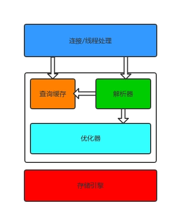 最上层是处理客户端过来的连接的。主要做连接处理、授权认证、安全等。Mysql在这一层维护了一个线程池,用于处理来自客户端的连接。Mysql可以使用用户名密码认证,也可以使用SSL基于X.509证书认证。