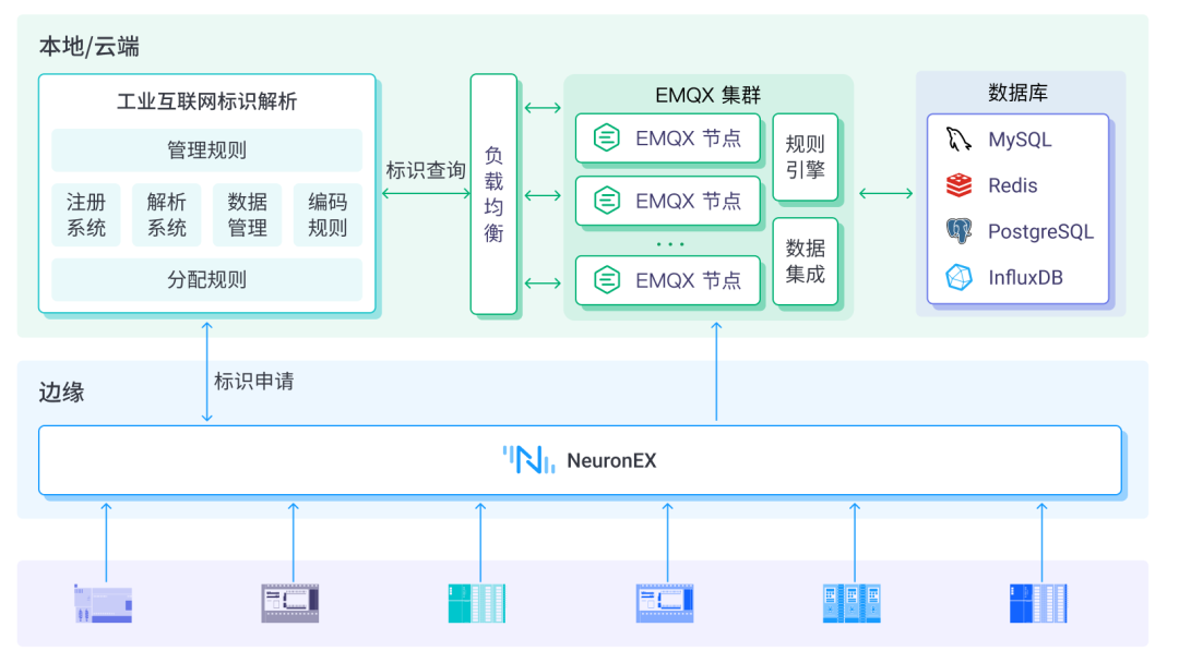 EMQX ECP 一款面向工业 4.0 的工业互联数据平台,旨在满足工业场景大规模数据采集、处理和存储分析的需求,ECP 提供边缘服务的快速部署、远程操作和集中管理等功能,助力工业领域数据互联互通,实现数据驱动的生产和运营。在工业互联网标识解析体系中,ECP 可以提供以下能力: