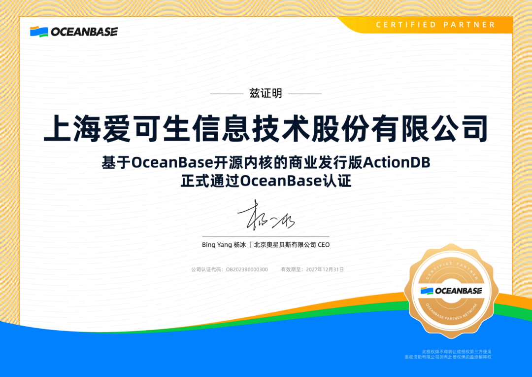 基于OceanBase开源内核的商业发行版ActionDB正式通过OceanBase认证