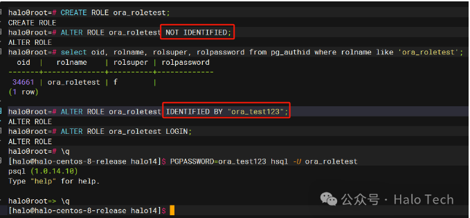 2. ALTER ROLE 新增 NOT IDENTIFIED 与 IDENTIFIED BY。