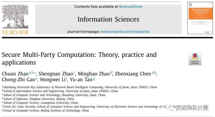 随着物联网、移动计算、大数据和云计算的快速发展,人们的生活方式也发生很大的改变。这些技术在收集、存储、传播和信息处理上提出了新模式,这对做为一个整体的整个社会提供了极大便利。为了共享这些不同技术提供的资源,不同组织或者个人之间合作计算变得越来越普遍了。不同数据类型的所有人通过协作计算,在不泄露他们自己秘密数据的前提下合并资源,并由此得到更多有价值的信息。例如,在物联网系统中从不同探测设备收集到的数据可以聚集起来产生目标值。云和客户可以协作得到恰当的服务。但与此同时,隐私信息和秘密数据泄露经常出现。这种安全性威胁严重限制了这些数据处理技术的应用和推广。因此,在多方场景中数据处理方法的隐私保护发展变成急切的任务。