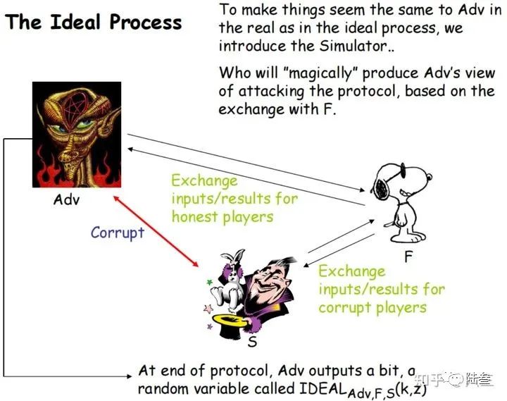 能够令人信服地模拟 攻击协议的观点,只根据 愿意透露给腐坏参与方的内容。