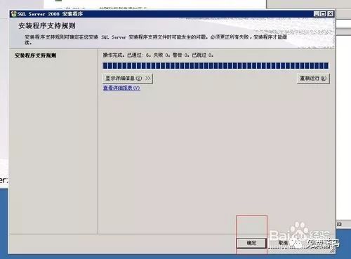 在“安装程序支持规则”中点击“确定”按钮