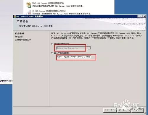 在“产品密钥”中选择“Enterpyise Evaluation”版本然后在输入“产品密钥”然后点击“下一步”按钮。