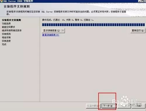 安装好后会出现“安装程序支持规则”界面,然后点击“下一步”按钮。