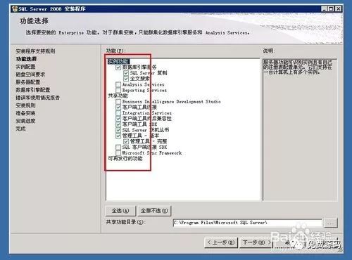 在“功能选择”界面中,在要安装的功能前面打勾。然后点击“下一步”。