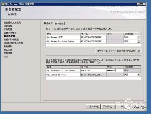 在“服务器配置”界面中,选择服务器的账户名和密码。然后点击“下一步”