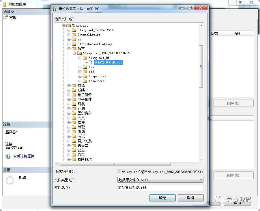 然后浏览源码目录,找到数据库文件,一般在51asp.net_DB文件夹下面。后缀名是.mdf