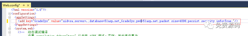 找到配置文件web.config,找到类似下面这个数据库链接字串