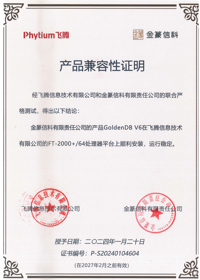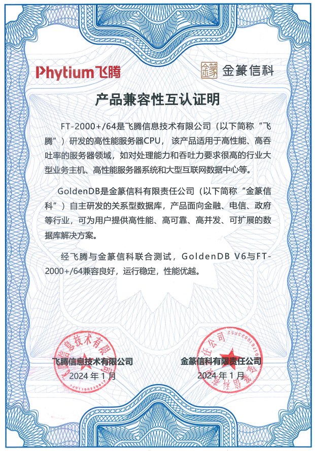 上一篇三六零数字安全科技集团有限公司互认证证书下一篇GoldenDB上下游软硬件互认证证书集