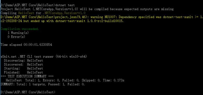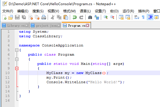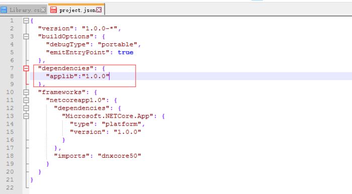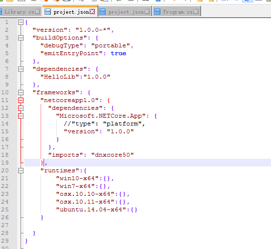 执行后,目录中文件多了“project.lock.json”,打开后一打串的json。他表示引用了安装本地计算机中的.Net Core Libriries, 还不知道这个详细的表示是什么。