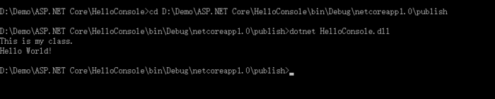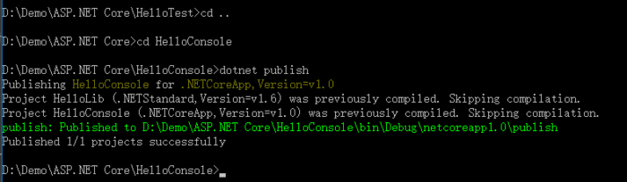 ** D:\Demo\ASP.NET Core\HelloConsole\bin\Debug\netcoreapp1.0\publish**