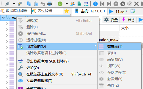 然后在右侧数据库列表点一下选择刚才新建的数据库。