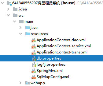 打开IDEA,找到数据库连接配置文件。(每个项目在说明文档里面都有数据库配置文件的文件的位置,如图:)
