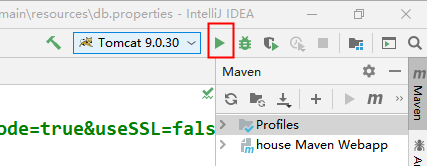 数据库配置好了以后,点击IDEA右上角启动Tomcat。