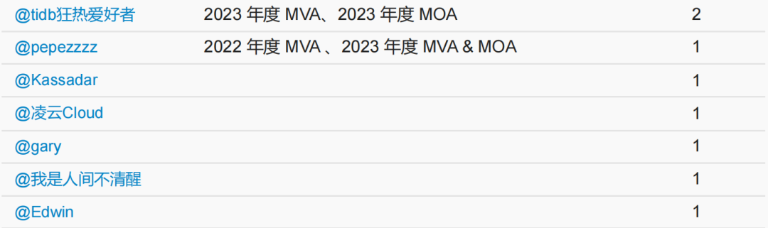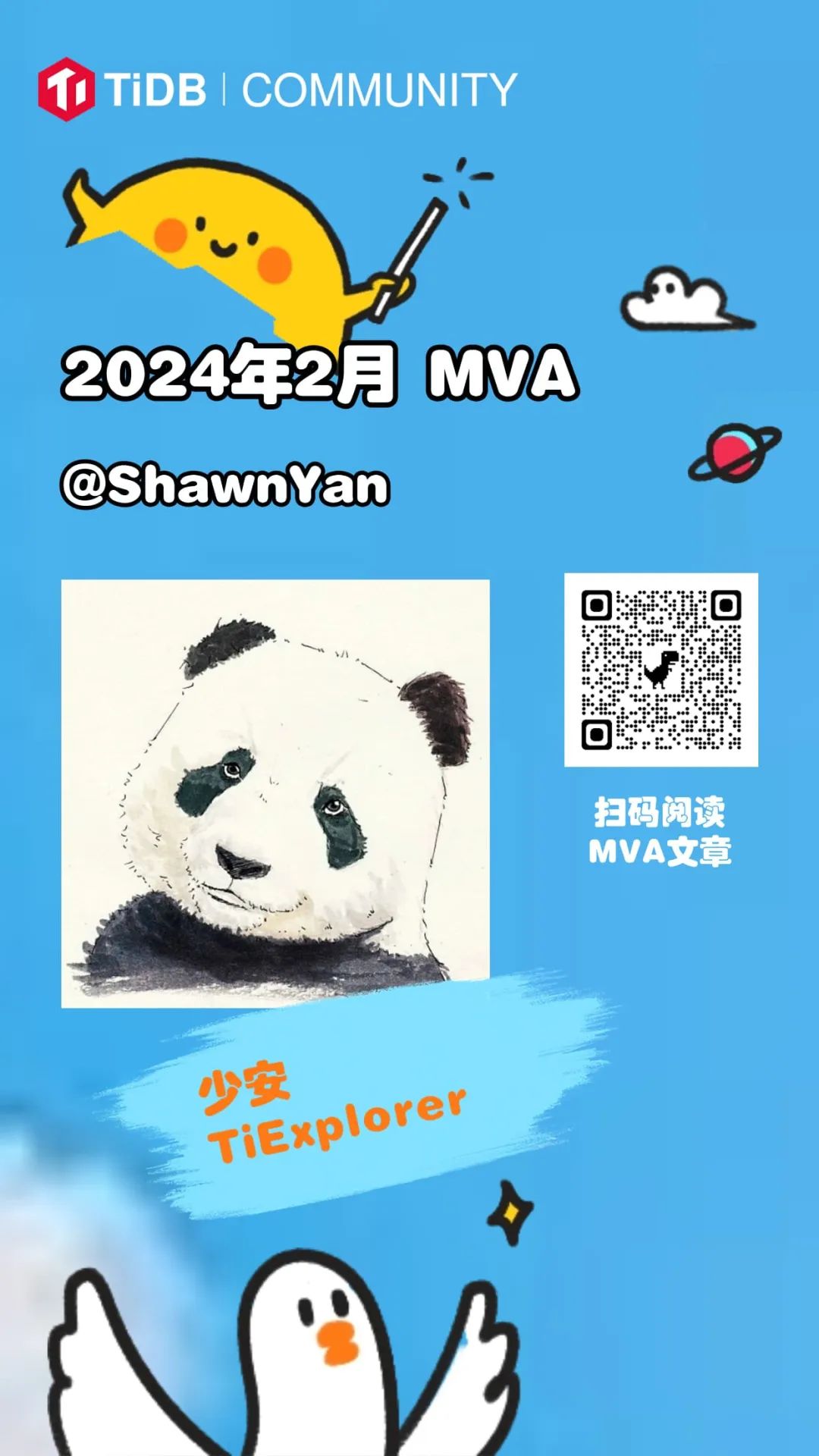 很荣幸能够成为 TiDB 社区的 MVA。今年我将继续努力撰写更多关于 TIDB 常见问题的实践性文章,为解决用户在 TiDB 使用过程中遇到的挑战贡献社区的力量。我深信,正是社区的团结和协作,让 TiDB 能够在开源环境中持续发展,实现更加顺畅的使用体验。