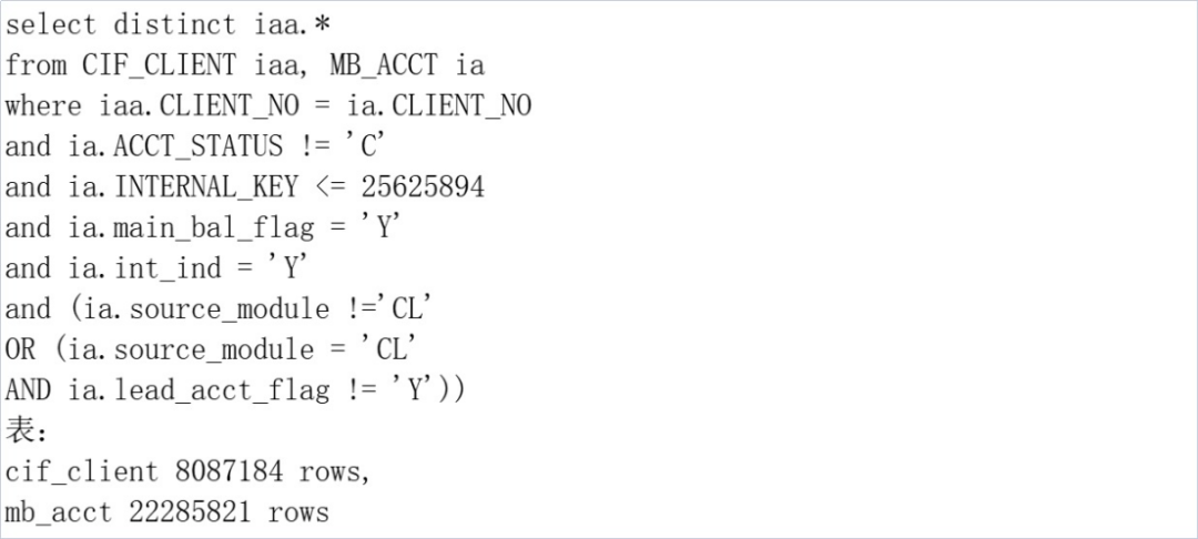 3)优化索引,CLIENT_NO,ACCT_STATUS,INTERNAL_KEY,main_bal_flag,int_ind,source_module根据情况创建本地索引。