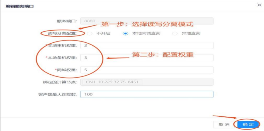 2)设置读写分离策略,编辑服务端口页面并点“确定”使之生效。