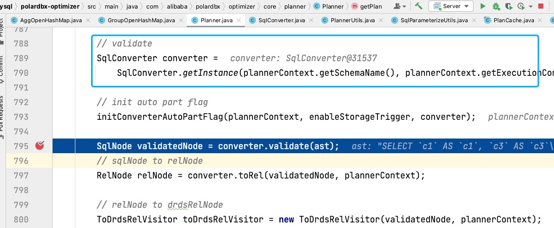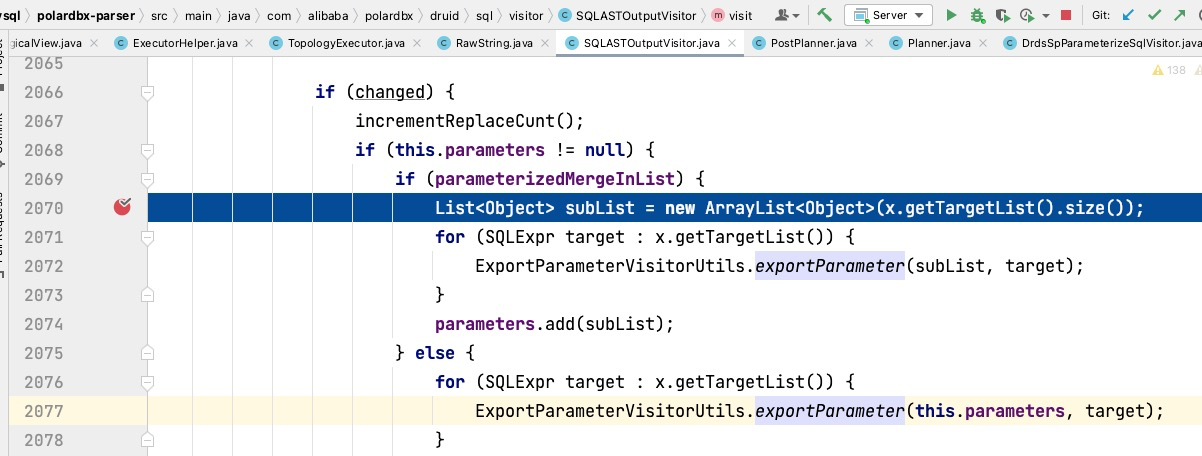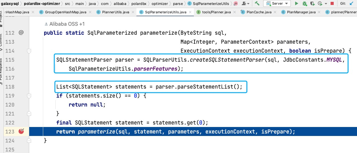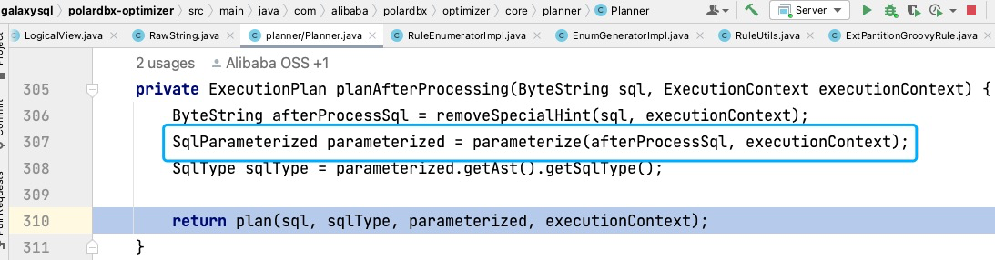 A: 是的,所以我们对plan进行了缓存,这就是PlanCache组件,可以理解为Map<CacheKey, Plan>。很自然的,我们需要对上述两条SQL进行参数化以便从map中进行查找,即参数化为select * from t where id in (?,?)的形式,代码在
