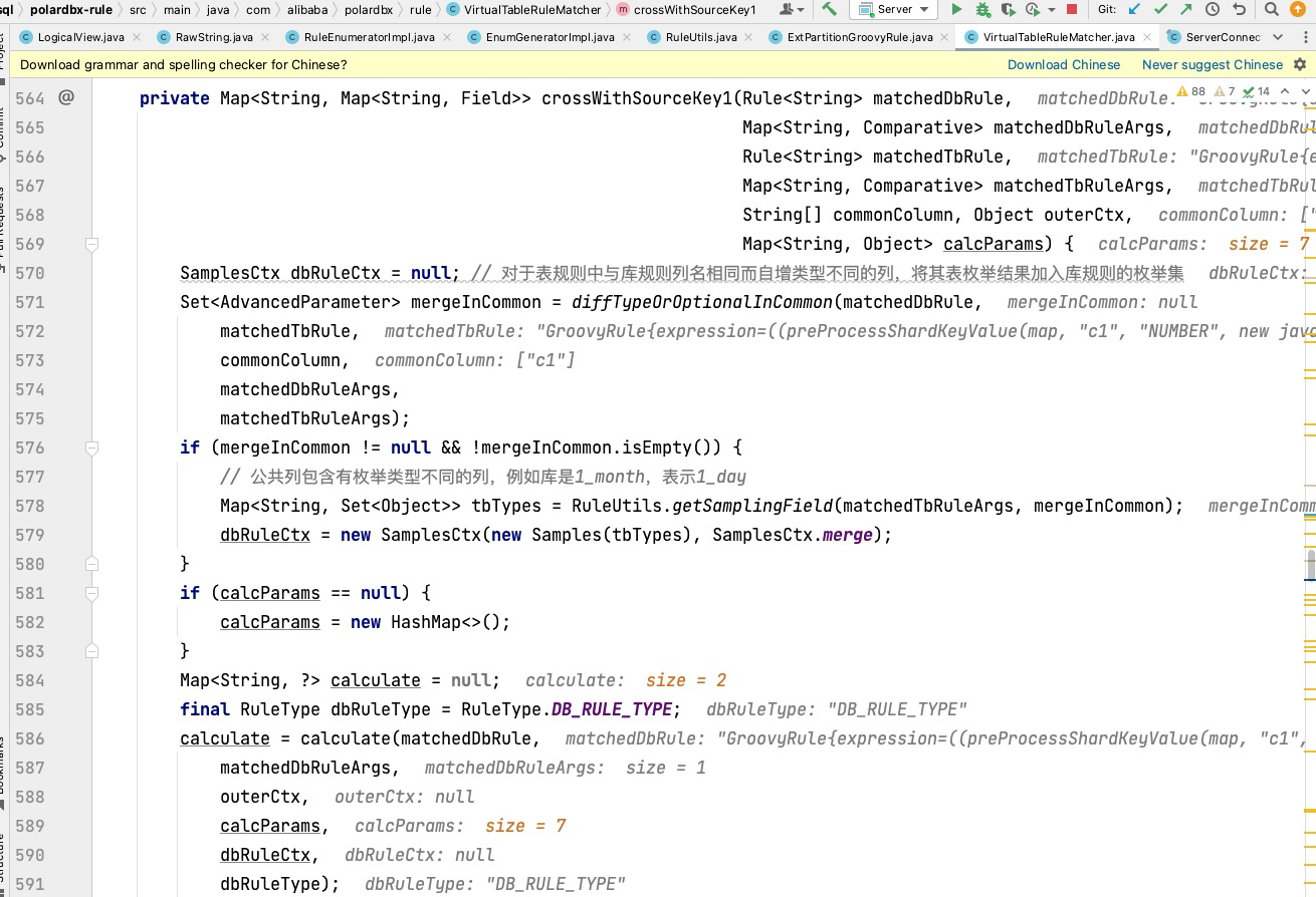 我们拿一个非常简单的场景来看一下吧,一个简单的表如下,create table t(c1 int, c2 int, c3 int) dbpartition by hash(c1) tbpartition by hash(c1) tbpartitions 2,一条最简单的SQL如下:select c3 from t where c1 in (1,2)。挑了五个阶段进行了并不太详尽的说明,如果你感觉比较抽象时,也可以动手调试一下,一些概念应该就会更加清晰了。