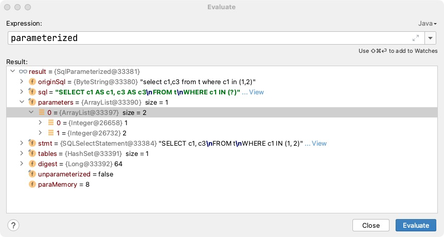 Q:细心的同学可能感觉有点奇怪,上面的select c1,c3 from t where c1 in (1,2) 参数化后为 select c1,c3 from t where c1 in (?),而非select c1,c3 from t where c1 in (?,?),这是为什么?
