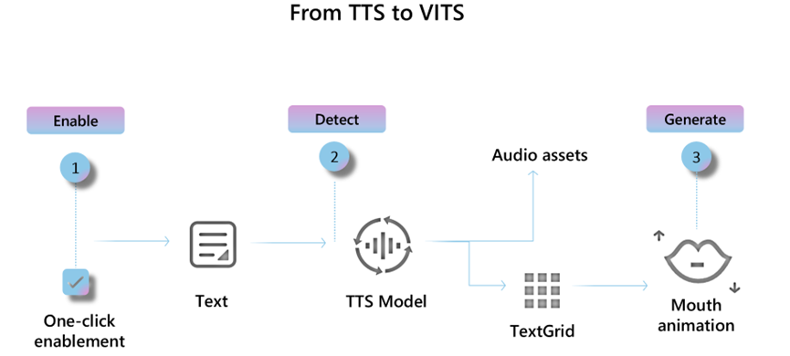 为了实现逼真的口型动画,完美世界游戏与微软 Azure 团队合作,在 Azure AI studio(国际版)训练、推理、部署、发布的能力支持下,自研 TTS 系统,不仅大幅提升了音频生产的效能,也借此将口型、表情动画精度达到了人工手段难以实现的水平。