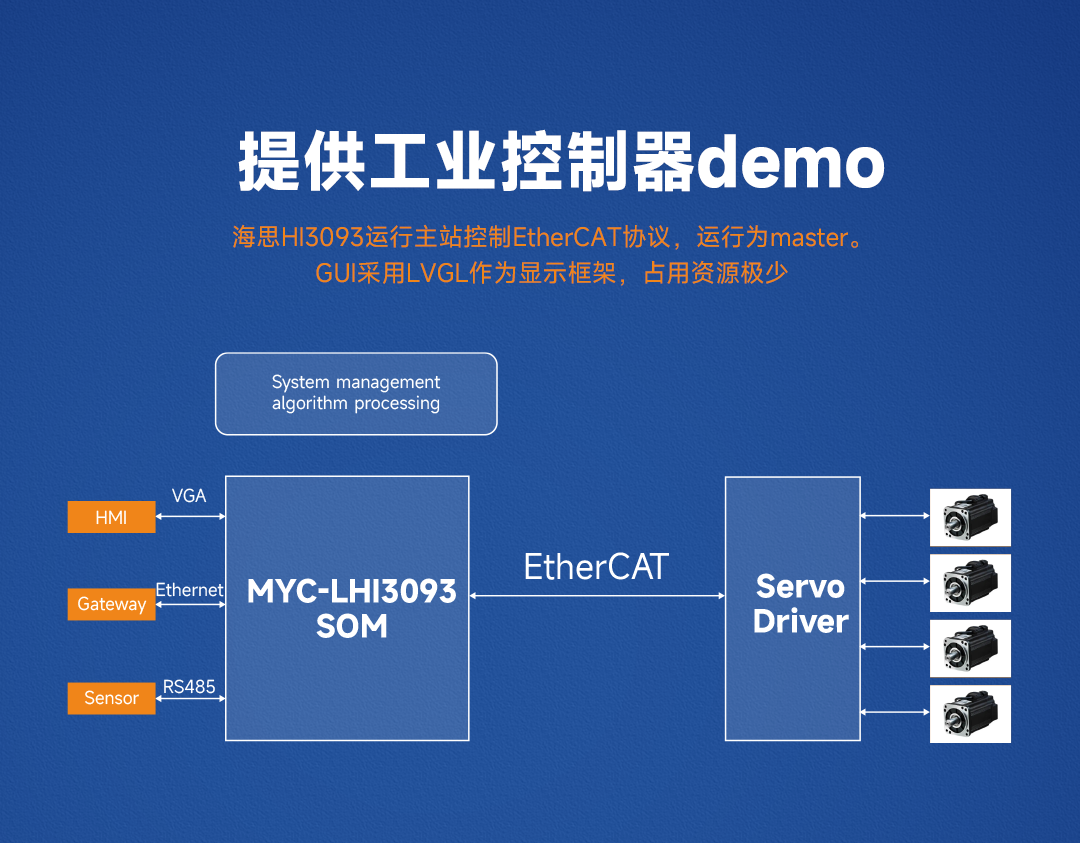 ,配套提供工业控制demo,方便客户评估PLC等应用场景实时控制性能,为追求实时性能的工控产品开发提供参考。